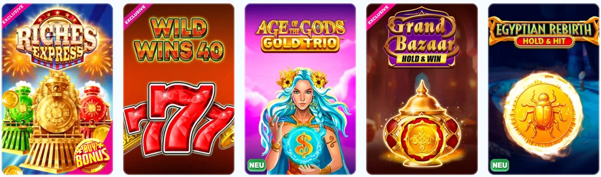 Unser umfassendes Belohnungssystem bietet einen attraktiven Willkommensbonus von 100% bis zu 500€ plus 100 Freispiele sowie ein mehrstufiges VIP-Programm mit exklusiven Vorteilen. Ergänzt wird das Angebot durch regelmäßige Promotionen, Turniere und spezielle Sonderaktionen.