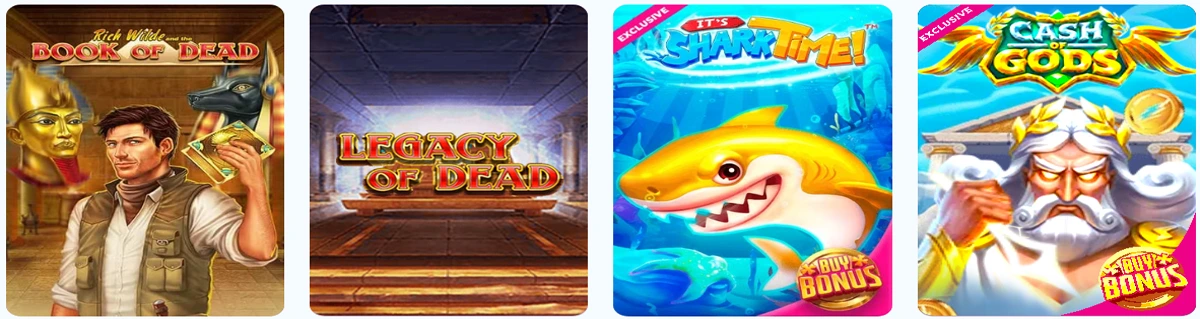 We feature an extensive collection of over 2,000 slots powered by leading providers like NetEnt, Microgaming, Play'n GO, and Pragmatic Play. Our most popular titles include Book of Dead, Bigger Bass Bonanza, Twin Spin Megaways, Money Train 2, and Legacy of Dead.
